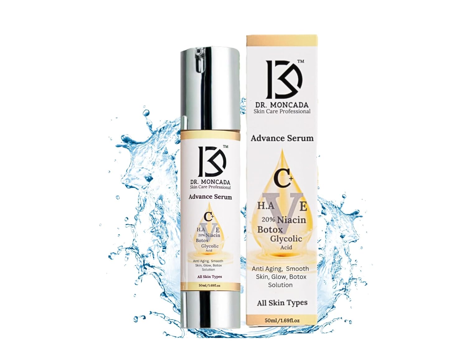 - DR.MONCADA Advanced all in one Botox super c serum for Mature Skin is a Specially formulated with vitamin c serum 20% hyaluronic acid Glycolic acid serum & more this anti-aging serum for fine lines wrinkle with botox stock solution for a youthful appearance a complete package serum face serum for women anti aging vit c serum hydrating serum
