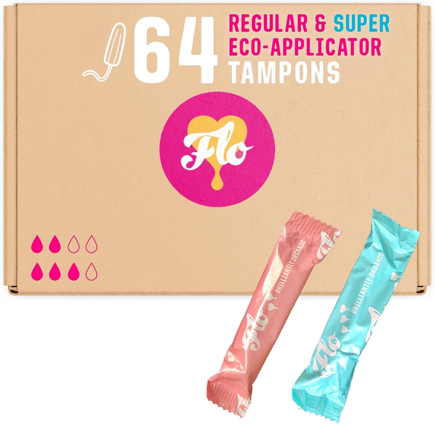100% organic cotton + eco-applicator: FLO tampons are always made with organic cotton - no harsh chemicals, bleach, chlorine or dyes so you can purchase with absolute confidence and no irritation. With a recylable sugarcane applicator that makes for seriously-smooth insertion, looks like plastic but made of plants! Sensitive skin friendly.