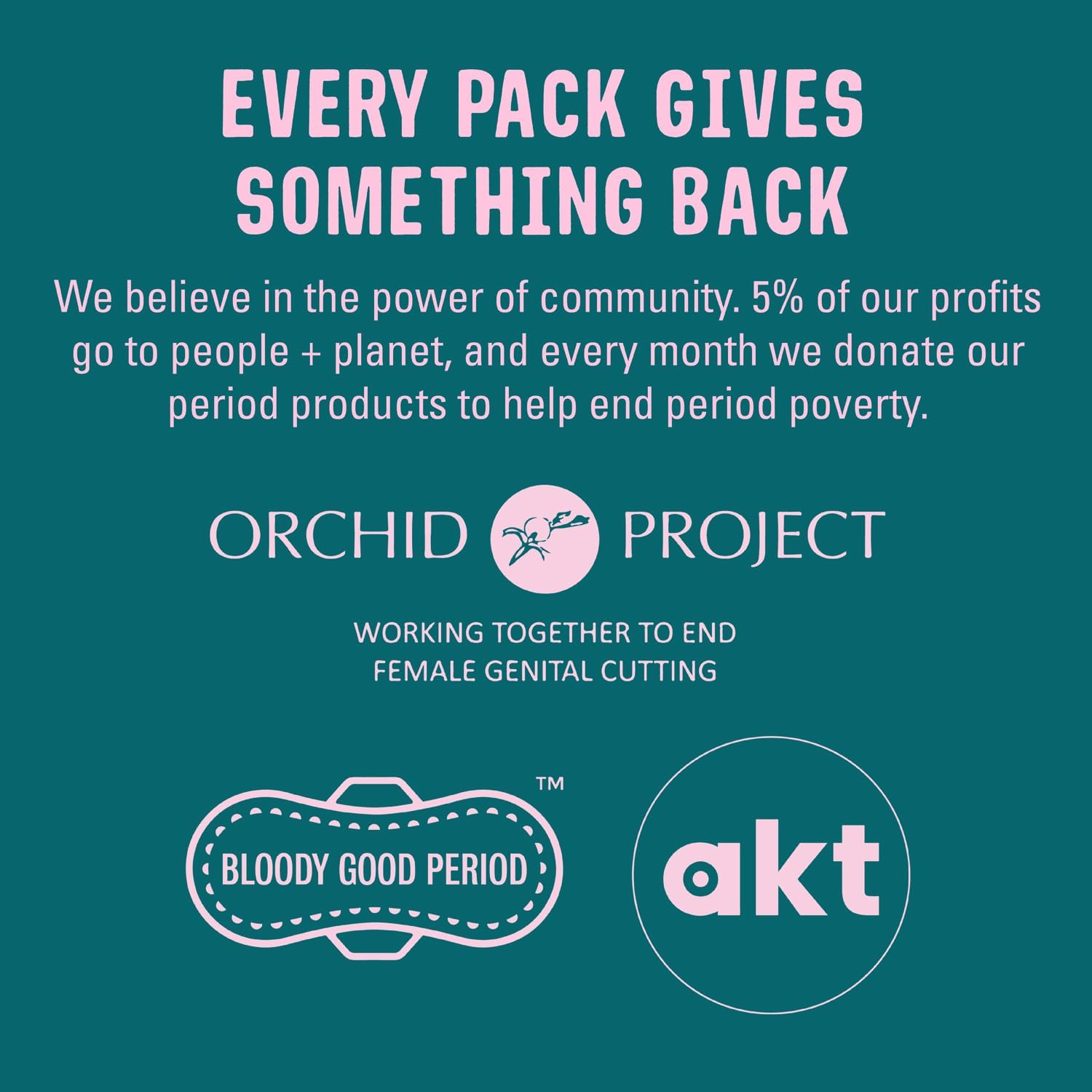 Every pack gives back: 5% of profits go to people + planet, FLO is founded by women of colour for people who menstruate. Plus, we're PETA-certified Vegan and Cruelty-Free & BCorp Certified!